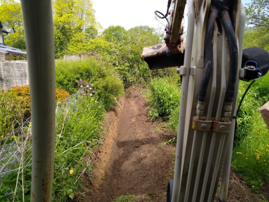 Shallow “Ha Ha” construction in restricted space with 1.5t machine and tilt hitch.